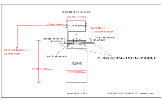 液氮罐補液控制系統(tǒng)由液氮補液罐、低溫智能化控制系統(tǒng)、閥門組件控制電磁閥和真空比例閥箱、PLC編程器、智能化控制人機交互控制終端、不間斷電源、溫度及壓力傳感器監(jiān)控探頭系統(tǒng)及反饋電路系統(tǒng)組成,功能可根據(jù)客戶需求,定制相關(guān)罐體自動增壓-出液-排氣的壓力及流量控制程序。