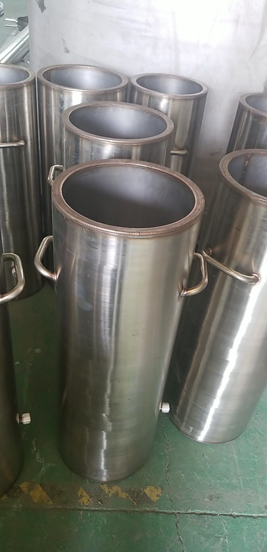 不銹鋼定制液氮罐的主要零件由奧氏體不銹鋼制成,具有低溫性能好、外形美觀、強度高等特點,能適用各種環境下使用。B型產品增加了支承結構,加強了耐運輸性能。容器采用高真空、多層絕熱結構形式,真空腔內安裝了吸附劑,可長期維持其真空度。容器蓋由帽蓋和芯塞組成,芯塞由絕熱性能良好的硬質泡沫塑料制成,具有降低液氮蒸發量和固定提筒的雙作用。為降低容器工作狀態的液氮的蒸發,提筒用不銹鋼制成。提筒的提桿和桿筒組件之間用玻璃纖維增強塑料細管連接,提高了絕熱性能。液氮罐的上部裝有定位環,提筒通過定位環上的槽和內膽底部的凸座及芯塞固定,工作狀態穩定,可以安全的搬運和長途運輸。容器外表面拋光處理,美觀大方。