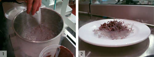 我要向您展示的**一項技術(shù)當(dāng)前在我們朋友Jean Jeans餐廳的Johnny Iuzzini的菜單上。他用短號將巧克力倒入液氮,從而制作出巧克力的花式和樹枝狀。
