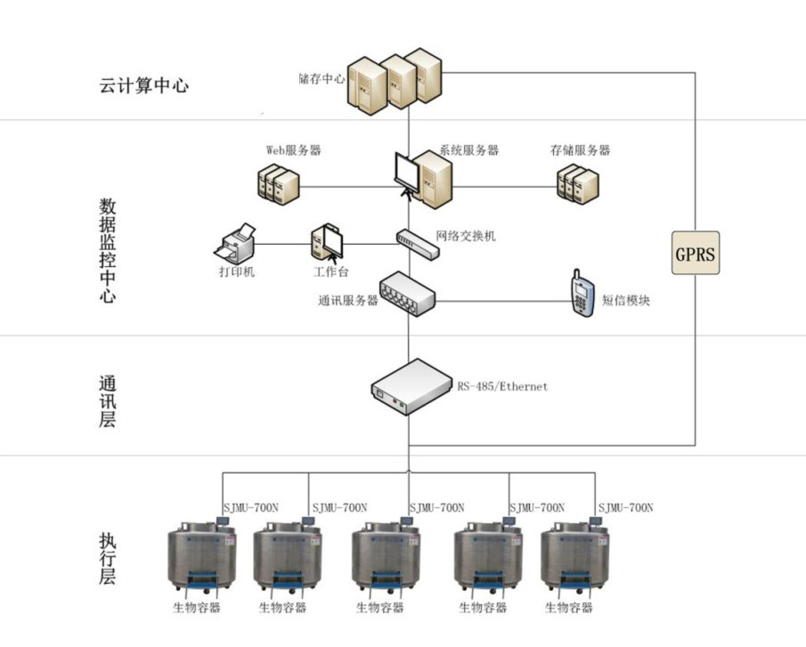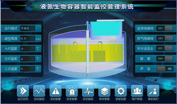 液氮罐監控:實時采集低位、高位溫度,檢測液位高度;根據液位值和溫度值自動開關進液電磁閥;發送報警信息。